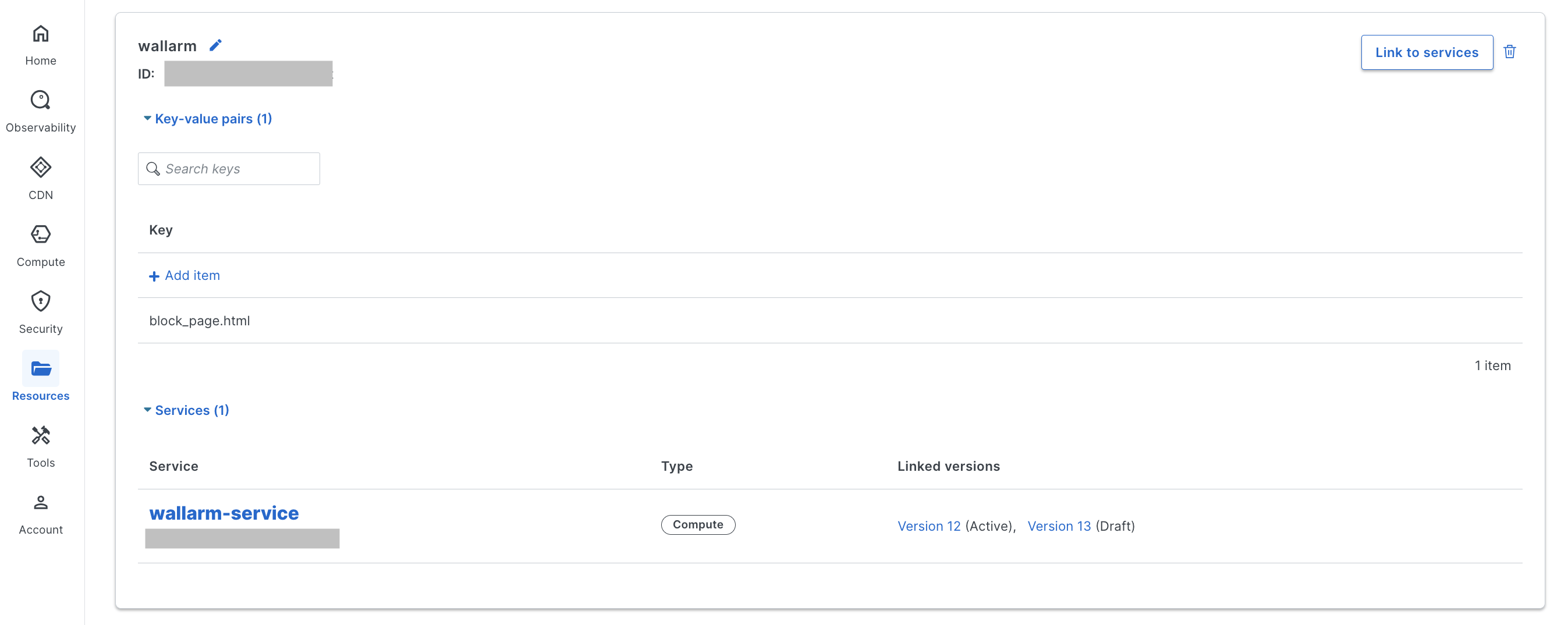 1. Go to Fastly UI → ResourcesConfig storesCreate a config store and create the wallarm_config store with the following key-value items: