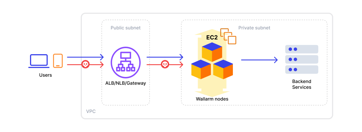 This article provides instructions for deploying the Wallarm NGINX node on AWS in-line using the official Amazon Machine Image (AMI).